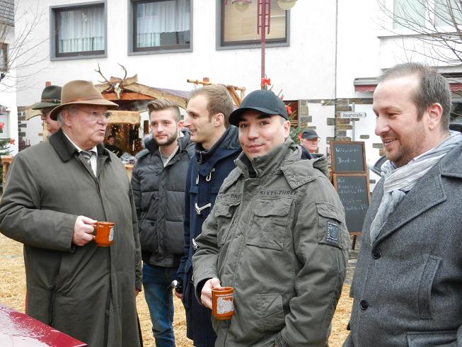 Zur Eröffnung des Nostalgischen Weihnachtsmarktes in Bad Hönningen informierten sich Vorstandsmitglieder des SPD-Ortsvereins, Mitglieder der SPD-Stadtratsfraktion und einige der neuen Kandidaten der SPD-Bürgerliste für die Kommunalwahl 2014 vom hervorragenden Ambiente des Weihnachts-marktes und sprachen mit Organisatoren und Standbetreibern. Beim Rund-gang konnten die Kommunalpolitiker von zahlreichen auswärtigen Besuchern Lob und Anerkennung für das besondere Flair entgegennehmen, den der Bad Hönninger Weihnachtsmarkt schon seit einigen Jahren bietet. Von Jahr zu Jahr strömen mehr Menschen nach Bad Hönningen, um sich den liebevoll gestalte-ten nostalgischen Weihnachtsmarkt mit seinen rund 50 Ständen anzuschauen. Wie meinte doch ein Besucher aus dem Kölner Raum: „In Köln sind die Weihnachtsmärkte zwar größer, aber so ein kleiner Weihnachtsmarkt wie der in Bad Hönningen ist beschaulich und bietet ein gemütliches Ambiente“. So kommen viele Besucher auch jedes Jahr erneut nach Bad Hönningen; denn die vielen liebevoll dekorierten Stände und die zahlreichen ebenso herrlich verzierten Tannenbäume, die strohbedeckten Straßen – all dies hebt den kleinstädtischen Weihnachtsmarkt von anderen in der Region deutlich ab. So zollten die Mitglieder der SPD-Fraktion insbesondere dem Organisator Bernd Ahlemeier und seinem Team und der Leiterin der Tourist-Information, Svenja Keller, mit ihren Mitarbeiterinnen ihren Dank für die in unzähligen Stunden geleistete Arbeit. „Nur wenn alle an einem Strang ziehen, kann ein solches Highlight für Bad Hönningen gelingen, das mittlerweile jährlich Tausende von Besuchern anlockt“, so Stadtbürgermeister Guido Job. Auch ein Besuch im Hohen Haus mit der Krippenausstellung und der Teddybären-Ausstellung von Sylvia Becker durfte ebenso wenig fehlen wie eine Einkehr bei der Künstler-gruppe „Art Color“. SPD-Vorsitzender Arno Schmitz lobte auch hier das große Engagement der vielen Künstler, die während des Weihnachtsmarktes ihre Bilder und Gemälde einem größeren Publikum präsentieren konnten.